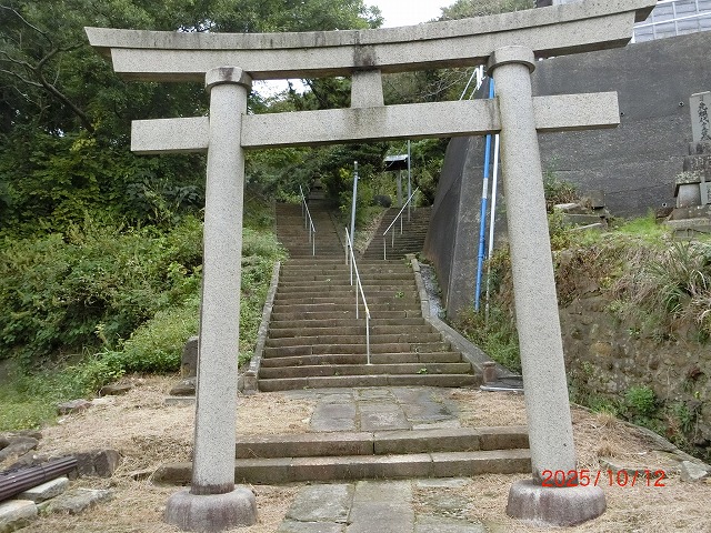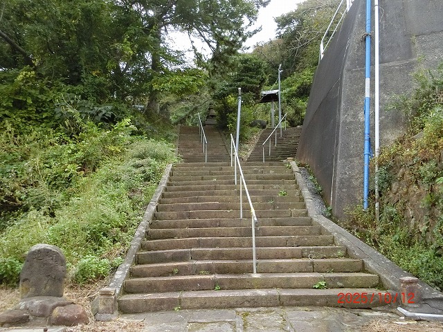 漁港出雲崎の神社の階段…何故か途中から分かれております。時間が無くて上っていないため詳細は不明。